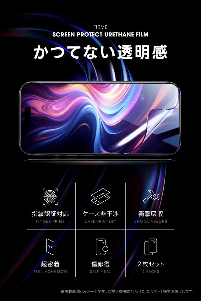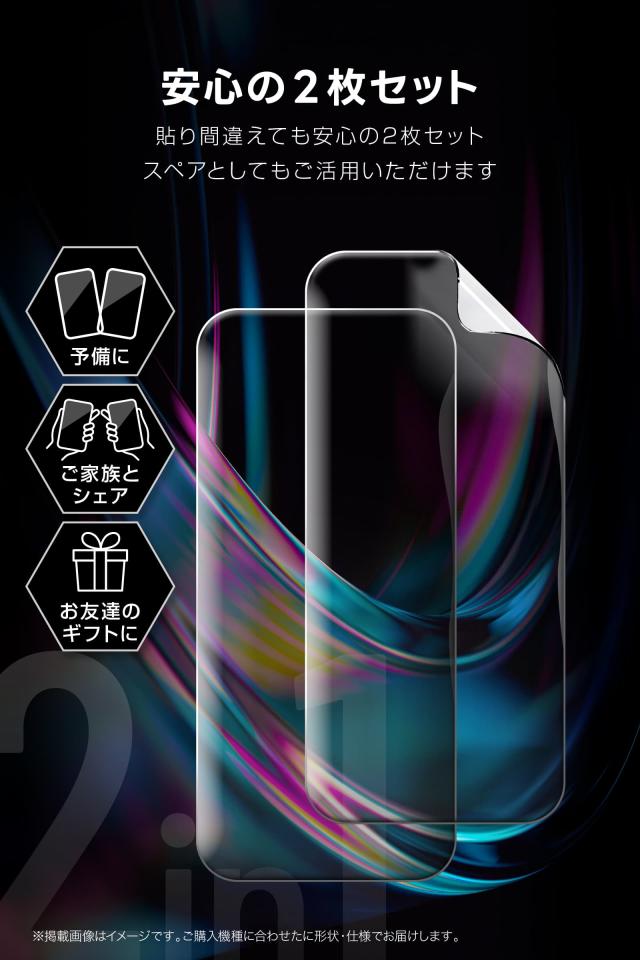 フィルムの端がぴったりフィット。ウレタンフィルムの特性上、ガラスフィルムに比べ取り付けが難しいので貼り間違い等の万が一に備え2枚セットにてご提供しております。