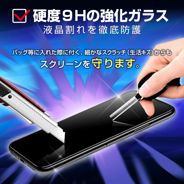 最高硬度9Hで日常生活で起こりうる細かい小傷を防ぐことができます。