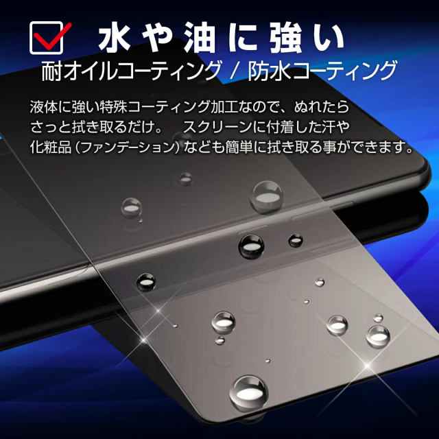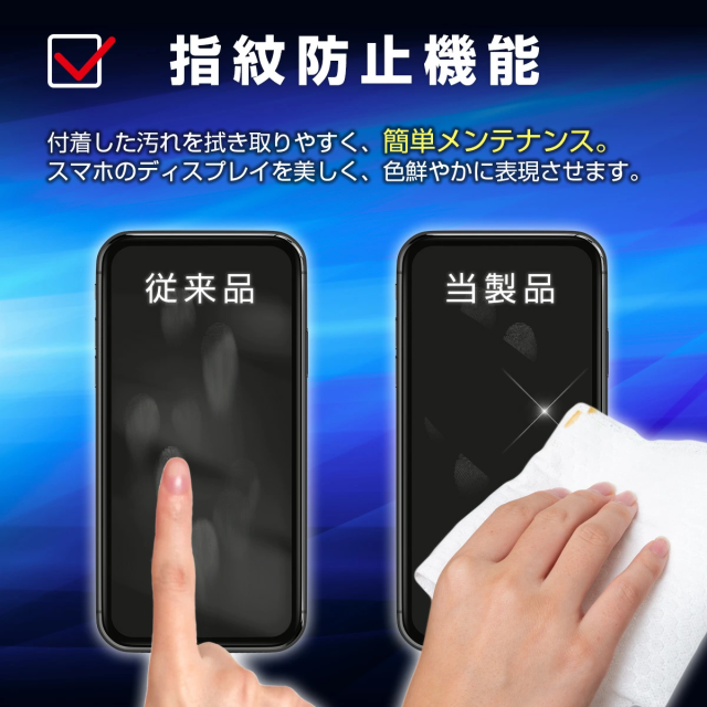 特殊コーティングで油や水をはじき、指紋の付着を防止します。