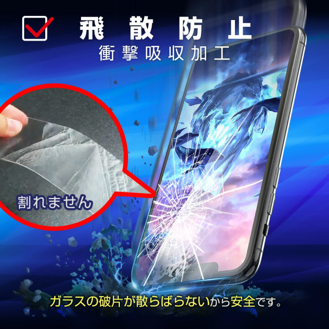万が一割れたときも破片が飛び散らない飛散防止加工が施されています。