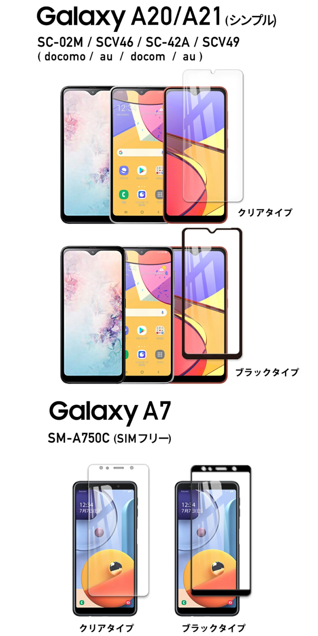 Galaxy A32 A52 A51 A41 ガラスフィルム 全面 保護フィルム A21 A20 シンプル A30 A7 ギャラクシー クリア SCG08 SC-53B SCG07 SC-41A SCV46 au SCV46 SCV43ガラス フィルム 液晶 画面保護 滑らか 9H 感度良好 透明 黒 クリア