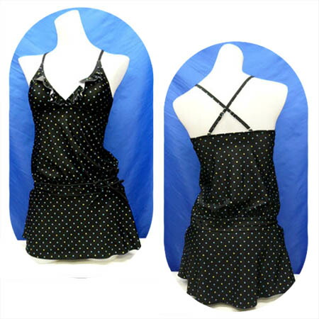 ■人気のドット柄♪胸元のフリルがとってもキュートなワンピースタイプです☆