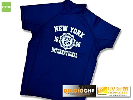 ラッシュガード メンズ 送料無料 M 水着 半袖 パーカーフードなし プール ビーチ 海 英字ロゴ 紺 ネイビー (s12739-1)