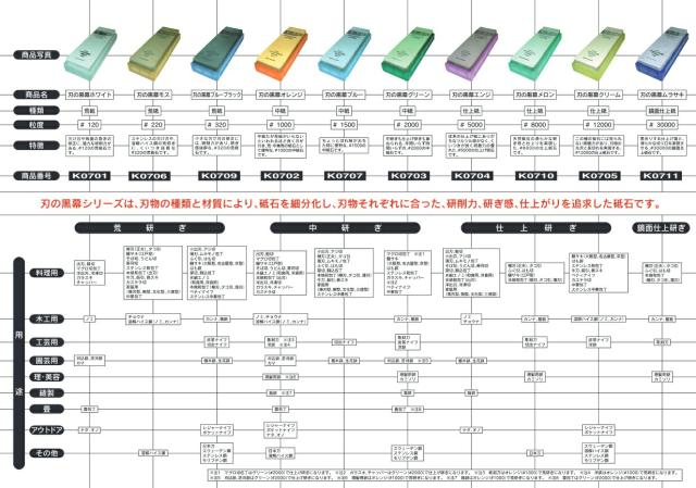 刃の黒幕シリーズ(全10種類)は、刃物の種類と材質により、砥石を細分化してあります。