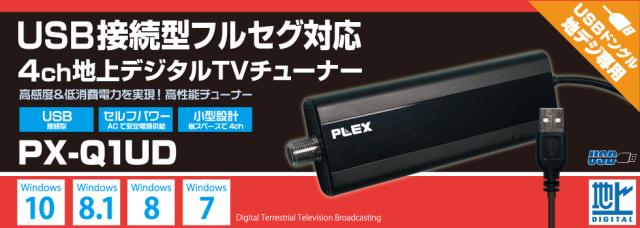 プレクス USB接続型フルセグ対応 4ch地上デジタル ドングル型テレビチューナー PX-Q1UD テレビチューナー TVチューナー パソコン 用 沖縄・離島配送不可