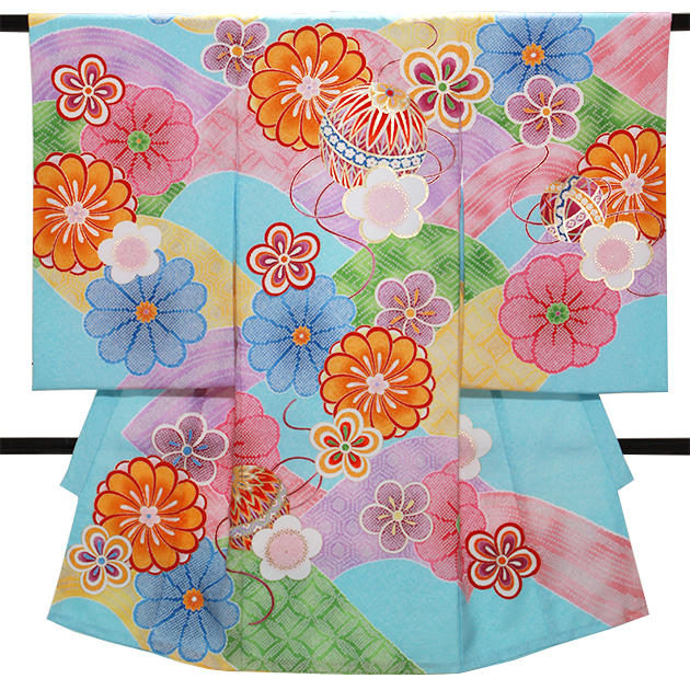 お宮参り 着物 女の子 水色/まり l-78 産着 レンタル ふたご 女の子 着物 送料無料