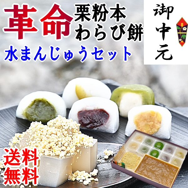 お中元 ギフト 200円OFF 夏ギフト 栗粉本わらび餅・5種類の水まんじゅう10個入 スイーツ 和菓子 お菓子 送料無料 フルーツ サマーギフト 涼菓子 ヒンヤリスイーツ 御祝 御礼 内祝 誕生日祝 御供 出産祝い 出産内祝 お供え もち OR 大福 OR 餅 f_ninki f_food