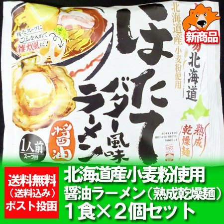 帆立 北海道 ラーメンお取り寄せ 送料無料 ほたて/ホタテ/帆立 バター 風味 ラーメン 乾麺 醤油味 1食入り×2袋 お取り寄せグルメ 海鮮 ラーメン ほたてバター