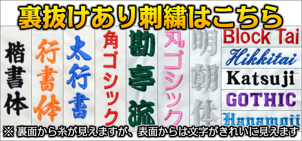 画像をタップしていただくとネーム刺繍(裏抜けなし先入れ加工)のご注文ページに移動します。