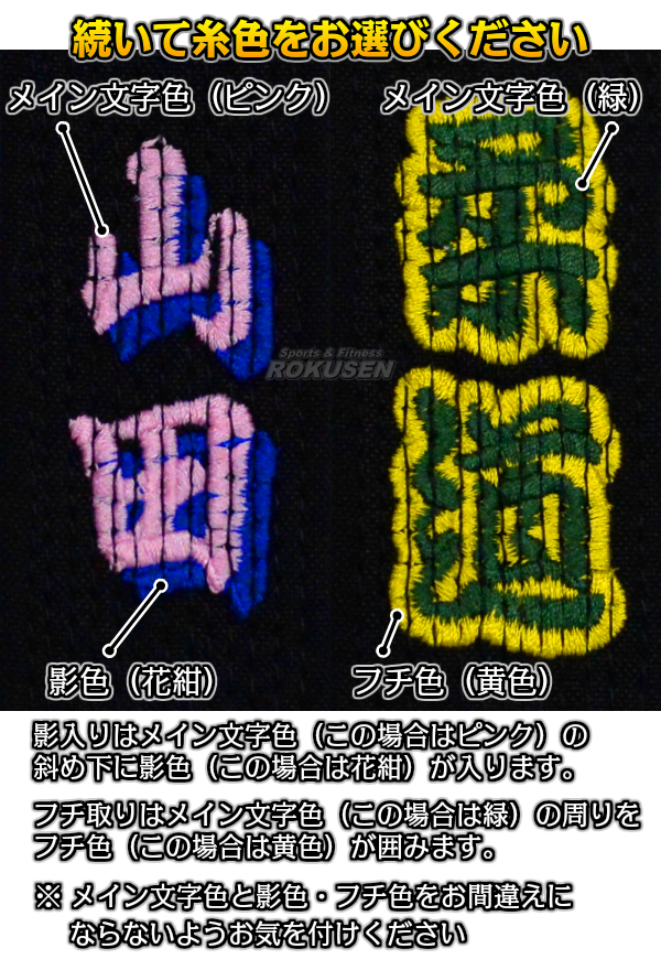 ※影入り、フチ取りの先入れ刺繍は非常に難易度が高いため、どうしても刺繍がわずかに斜めになってしまったり、中央から少しずれてしまう場合がございます。