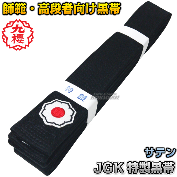九櫻・九桜 柔道帯 講道館マーク入り特製黒朱子帯(化粧箱入り) JGK 帯幅:4.5cm 黒帯 サテン帯 ネーム刺繍別注対応可能 早川繊維