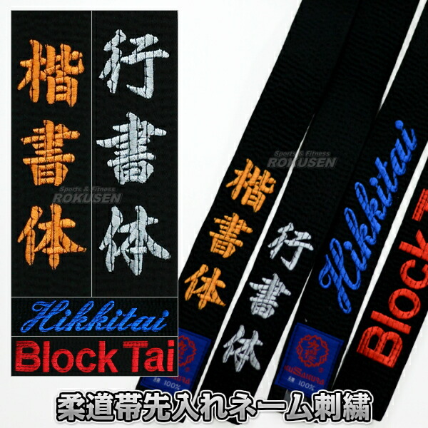 柔道 柔道帯ネーム刺繍 先入れ特殊加工(※裏抜けなし) 1文字 楷書体・行書体・ブロック体・筆記体 柔道衣 空手衣 合気道衣