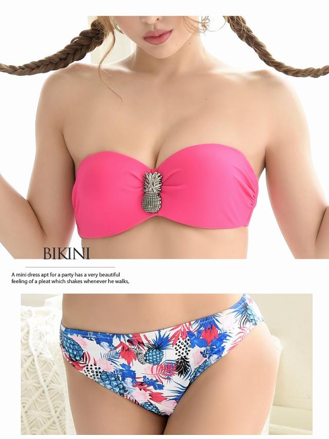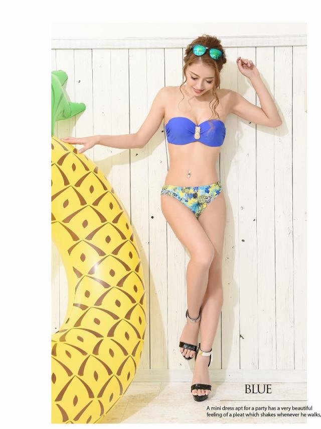 ☆胸元の存在感抜群なパイナップルブローチがアクセントになったバイカラー南国風バンドゥビキニ♪