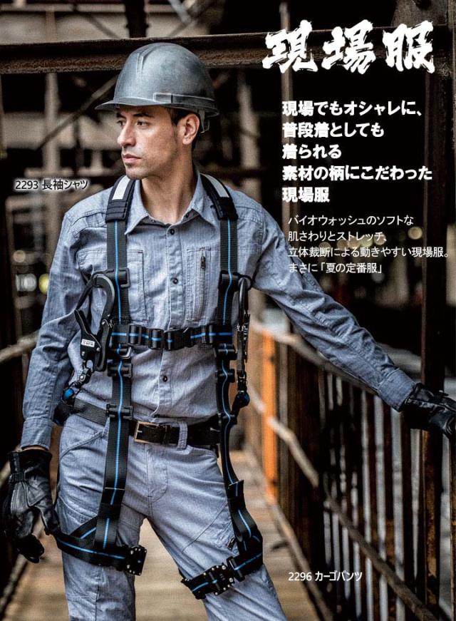 素材の柄にこだわった現場服