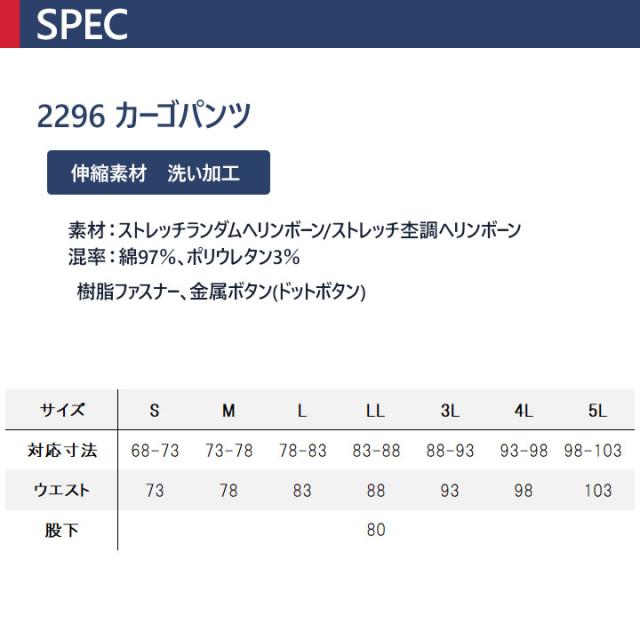 カーゴパンツ ジーベック 2296 ストレッチ ズボン 作業服 作業着 春夏 XEBEC ユニフォーム 2294シリーズ