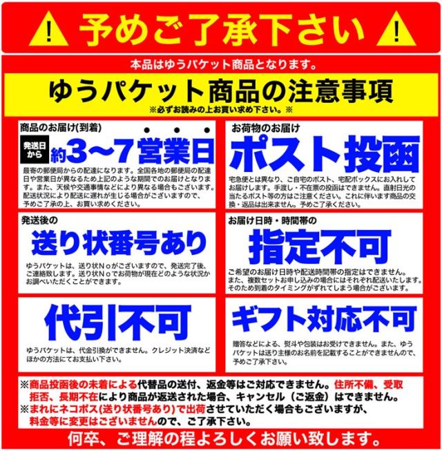 ※商品投函後未着による代替品の送付、返金等はご対応できません。