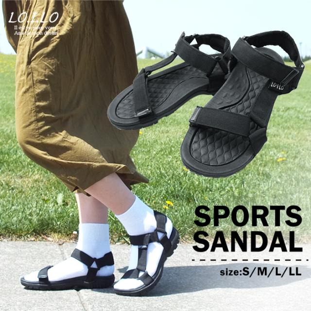 スポーツサンダル レディース サンダル 厚底 アウトドア スポサン フラットソール ブラック カジュアル 歩きやすい 軽い 楽ちん ベルクロサンダル 機能性とデザイン性を兼ね備えた夏の定番!ベルクロデザインのスポーツサンダル 送料無料 LO.I.LO ロイロ 2209601