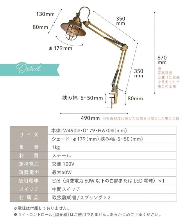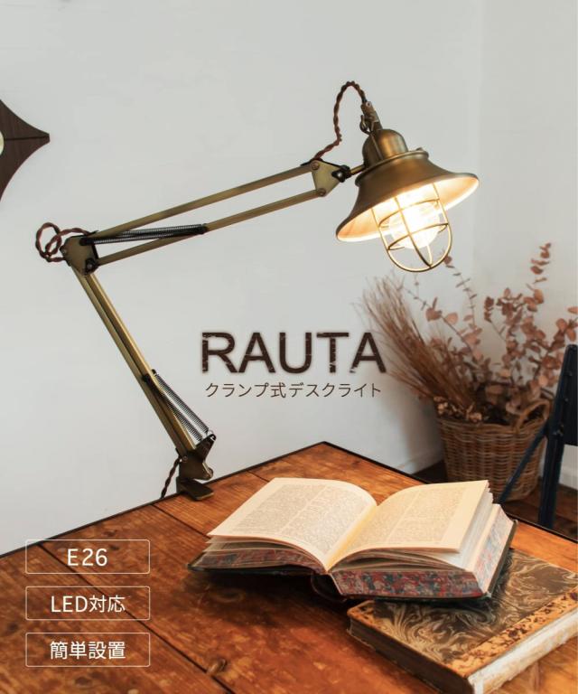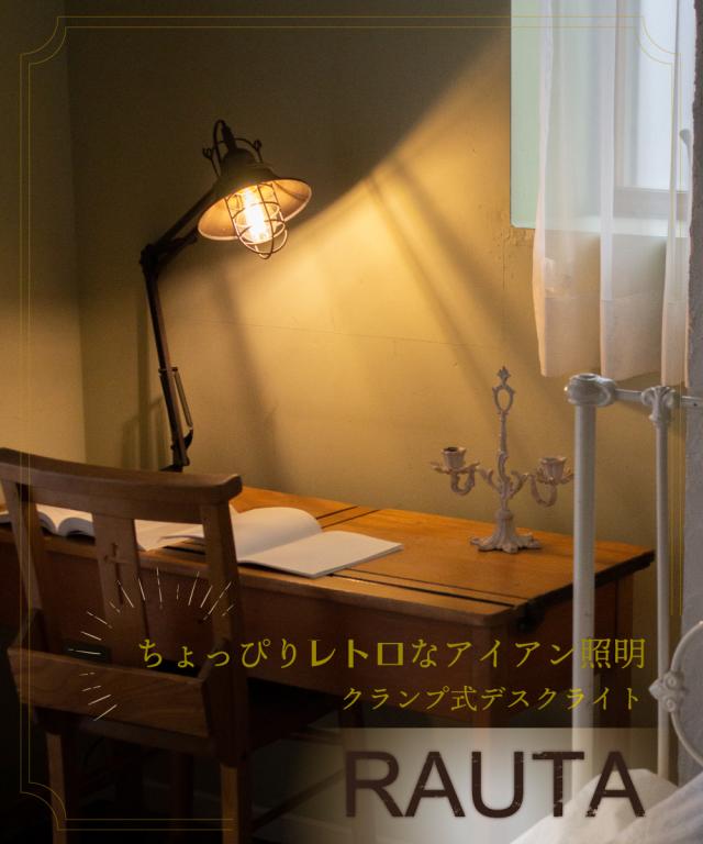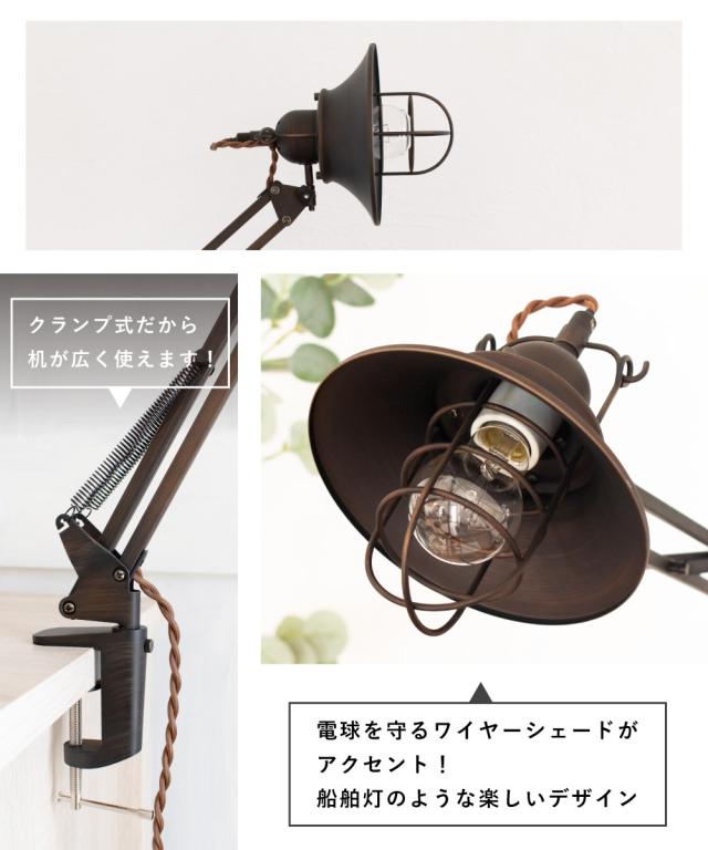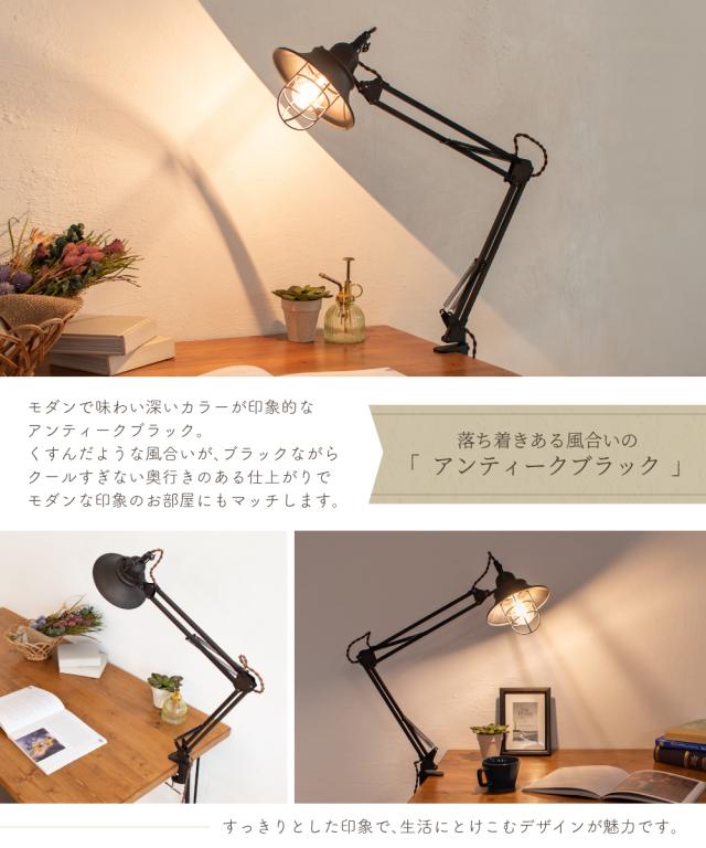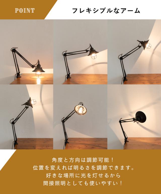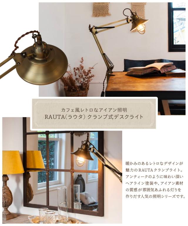 【Ampoule】 クランプライト 照明 おしゃれ デスクライト アイアン 机 デスク テーブル リビング ダイニング 寝室 カフェ レトロ アンティーク ヴィンテージ 照明器具 間接照明 ブラック LED クリップライト RAUTA ラウタ クランプ式デスクライト