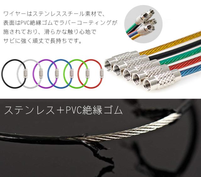 - カバンの持ち手にキーホルダーを付けたいのに幅が広くて付けられない・・・って時に、このワイヤーを見つけました。 7色あってカルフル、そのうえキーホルダーも付けられて大変満足してます。