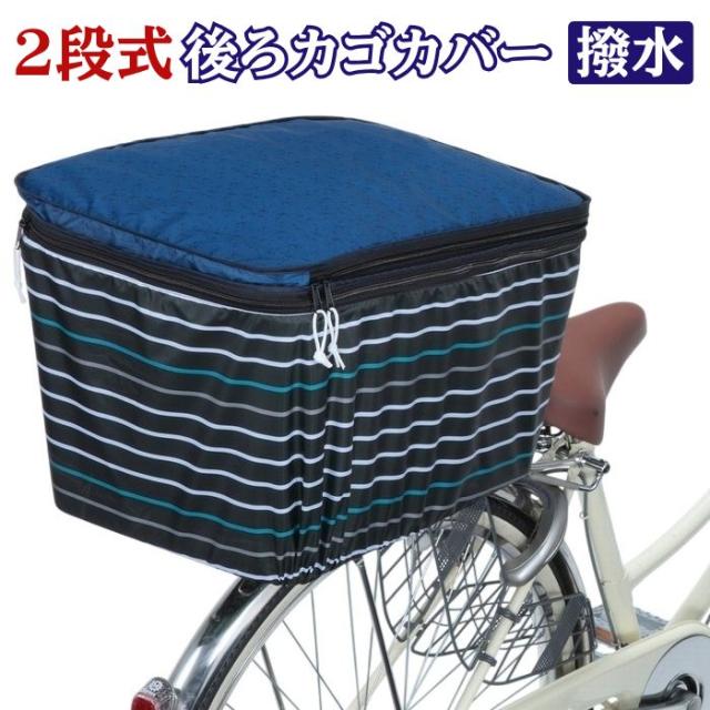 自転車カゴカバー 2段式 後ろカゴカバー ネイビー OR-PB6 雨よけ 大きめ 自転車 後かごカバー 後ろカゴカバー 大型 防水 おしゃれ かわいい 二段式