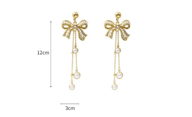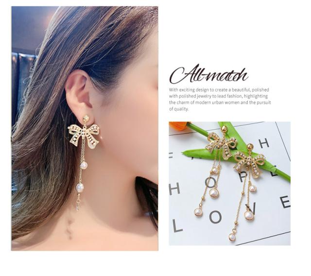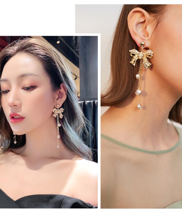 洗練されたデザイン人気のパールリボン ロングピアス。