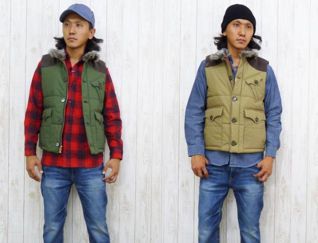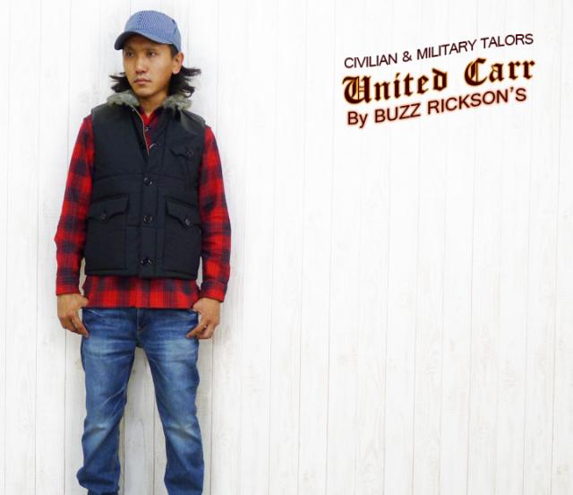 【中綿ベスト】UNITED CARR by BUZZ RICKSON"S【ユナイテッドカー by バズリクソンズ】 C/Nクロス ファー付きレザーヨーク中綿ベスト