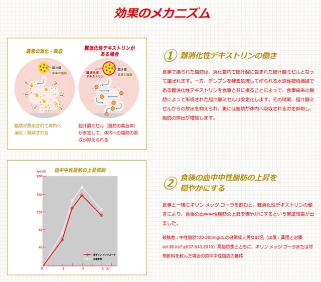 本品は、食事から摂取した脂肪の吸収を抑えて排出を増加させる難消化性デキストリン(食物繊維)の働きにより、食後の中性脂肪の上昇を抑制するので、脂肪の多い食事を摂りがちな方、食後の中性脂肪が気になる方の食生活の改善に役立ちます。