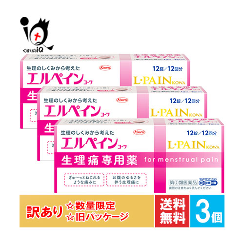 訳あり【指定第2類医薬品】★エルペインコーワ 12錠(12回分)×3個セット【Kowa 興和】1回1錠で、速くよく効く生理痛専用薬【訳あり 旧パッケージ商品】