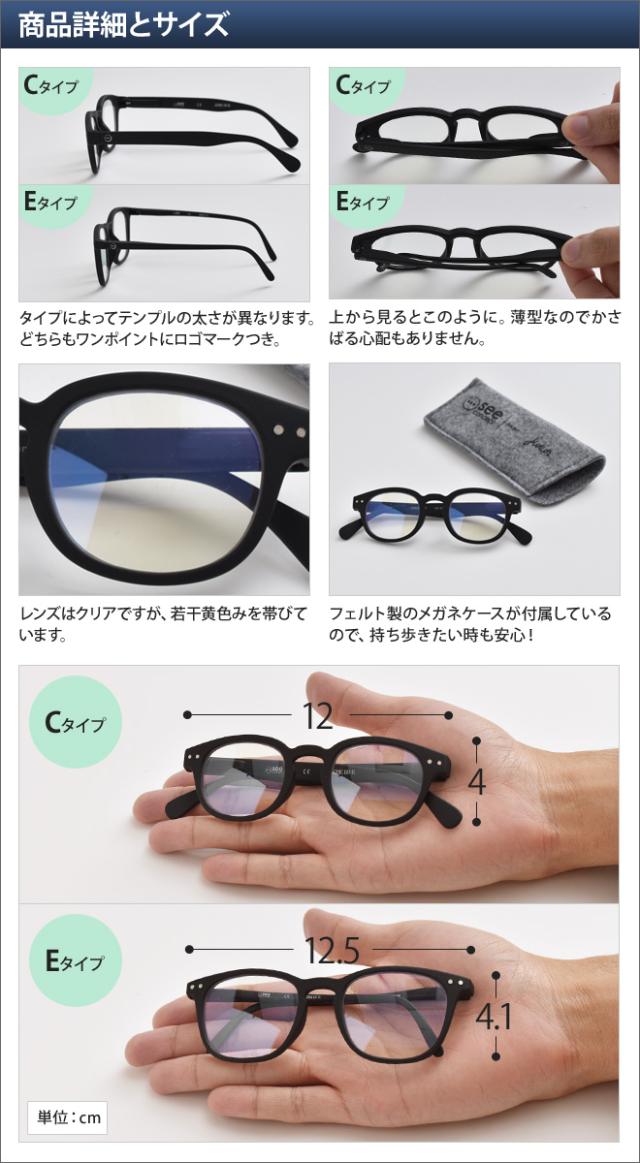 | タイプE サイズ | 【フロント幅】約 12.5cm 【テンプル長さ】約 12cm 【レンズ】約 幅4.3×高さ3.6(cm) 【ブリッジ幅】約 1.9cm 【たたんだ状態】約 幅12.4×高さ4.1×奥行き2.3(cm) |