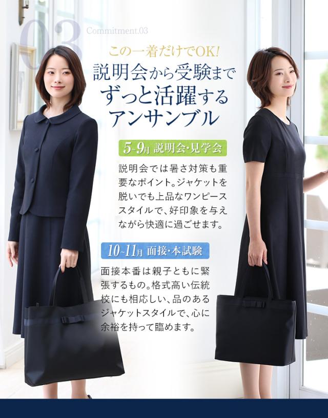 【TVドラマ「フェイクマミー」着用】 お受験 スーツ レディース お受験スーツ 母 ママ 紺 濃紺 ワンピース ジャケット 母親 面接 説明会 幼稚園 小学校 授業参観 入園式 入学式 卒園式 卒業式 七五三 大きいサイズ ネイビー 7号 9号 11号 13号 15号 17号 KS-0305 送料無料