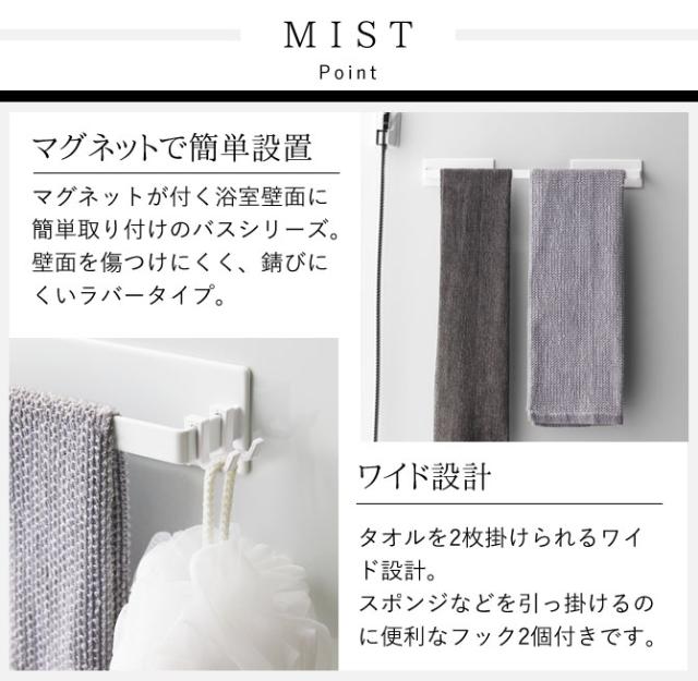 タオルハンガー,タオル掛け,タオル,タオルバー,タオルかけ,ハンガー,マグネット,磁石,マグネット収納,マグネットラック,マグネット収納ラック,バスルーム,お風呂,浴室,風呂,お風呂用,バス収納,バス小物,壁,壁掛け,壁面,浮かせる,浮かせる収納,空中収納,簡単設置,収納ラック,収納,ラック,ホルダー,MIST,ミスト,ホワイト,白,モノトーン,山崎,yamazaki,生活感が出ない,すっきり,コンパクト,省スペース,シンプル,シンプルデザイン,スタイリッシュ,北欧,おしゃれ,お洒落,オシャレ,インテリア,雑貨,部屋,賃貸,マンション,一人暮らし,独り暮らし,トータルコーディネート,新生活,家族,ファミリー,整理整頓,