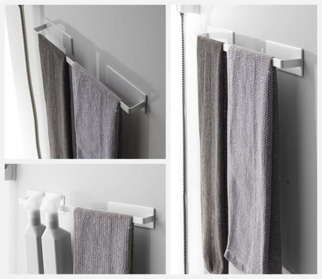 マグネットが付く浴室壁面に簡単取り付けのバスシリーズ。壁面を傷つけにくく、錆びにくいラバータイプのバスルームタオルハンガーです。