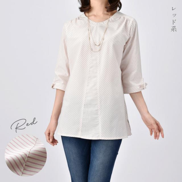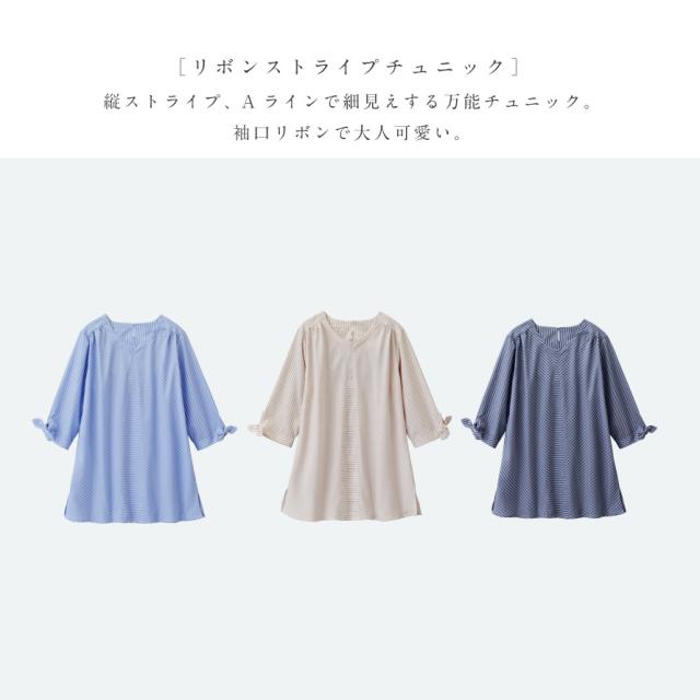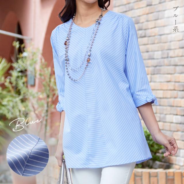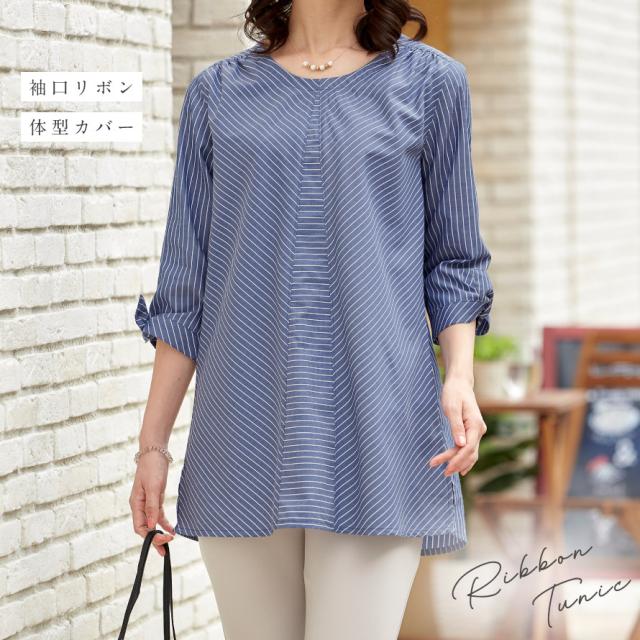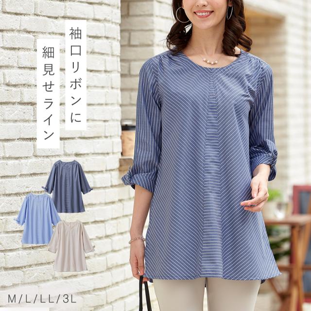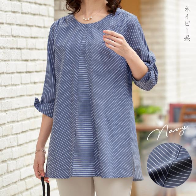 チュニック ブラウス 大人可愛い 春 夏 ストライプ Aライン トップス レディース 体型カバー お尻 カバー ミセス きれいめ ストライプほそ見せチュニック M L LL 3L 大きいサイズ ゆったり 50代 60代 70代 婦人 ミセスファッション メール便対応