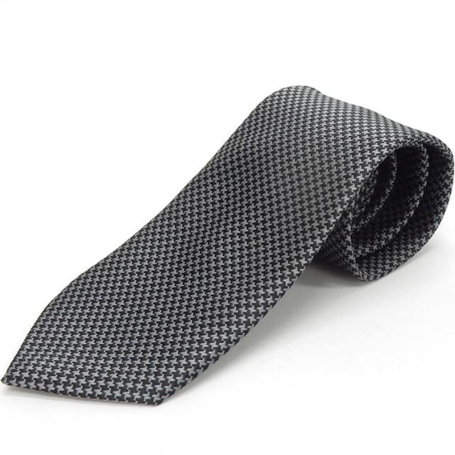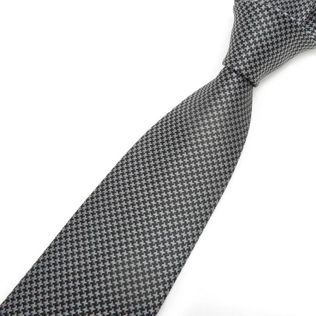 日本製 ネクタイ 甲州織 鼠&黒/千鳥格子 テトロン糸使用 洗濯機OK メール便OK BUN-C01