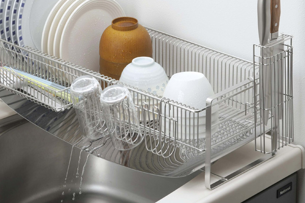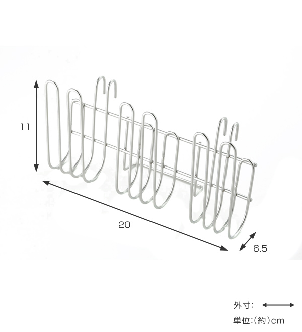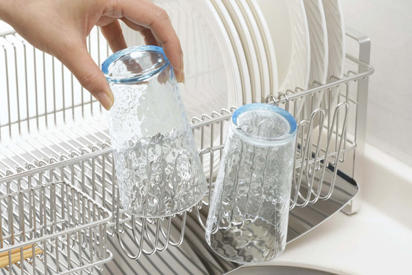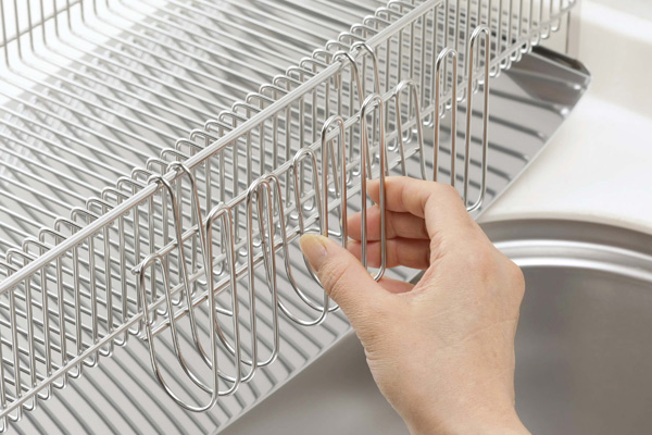 今お使いの水切りラックに掛けるだけで使えるグラスフックです。場所を取りがちなグラス類をラックの外側に掛けるだけで食器の収納量が増えて毎日の洗い物が快適に進みます。