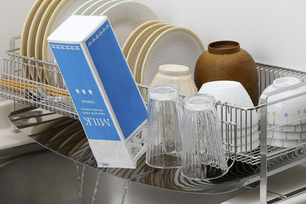 グラスより高さがあり、かさばりがちな牛乳パックやペットボトルの水切りにも便利に使えます。