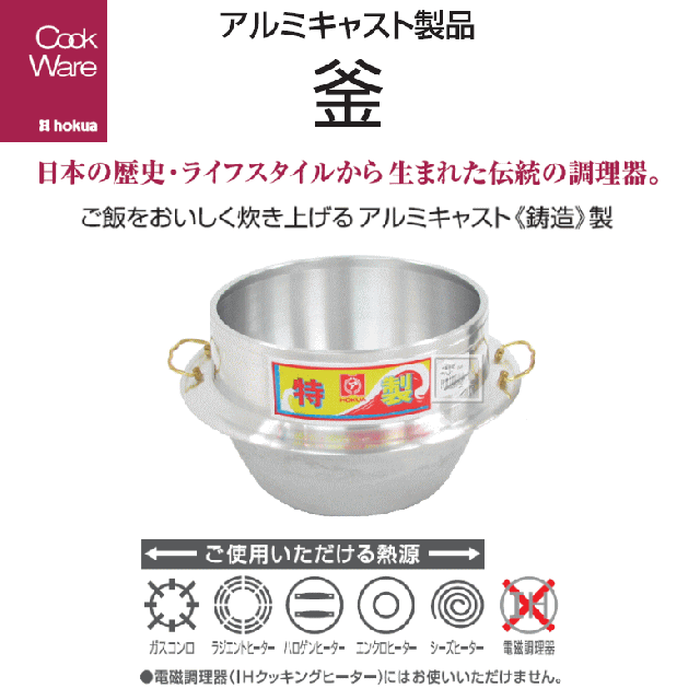 ご飯をおいしく炊き上げるアルミキャスト製 羽釜