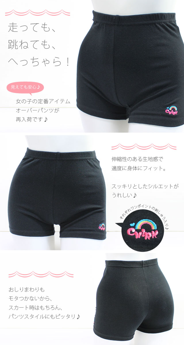 ●キッズスパッツ部門楽天ランキング入賞のオーバーパンツ!カワイイ刺繍の王冠・虹・ケーキ・蝶・リボンとキュートな刺繍が揃ってます。 ●人気のキッズオーバーパンツ!1分丈で体にフィットするから、ミニスカートやパンツスタイルとも合わせやすい優れものです。 ●生地は綿混♪肌なじみが良くムレにくいから夏にも大活躍です。 ●毎日履きたいから、洗い替えに便利な5枚セットです。 |