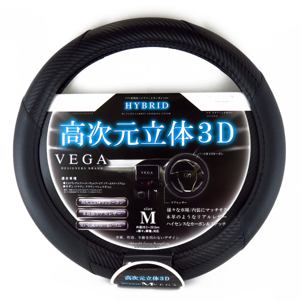 プラウド ベガ ステアリングカバー Mサイズ ブラック レザー/カーボン調 外径38cm〜39cm用 ハンドルカバー DH-063