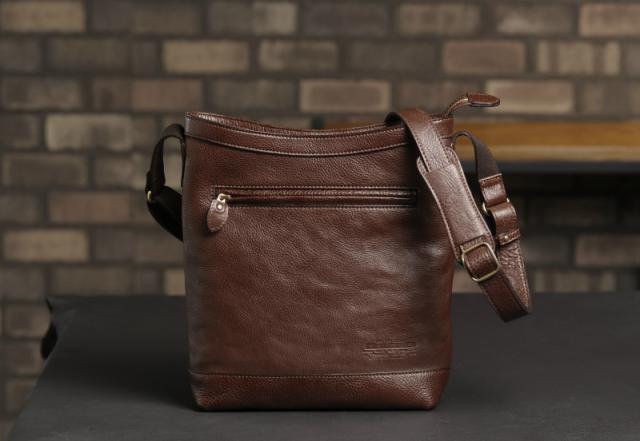 しっとりオイル仕上げの牛ヌメ革を使用したショルダーバッグ。仕分け整理ができる3室構造。