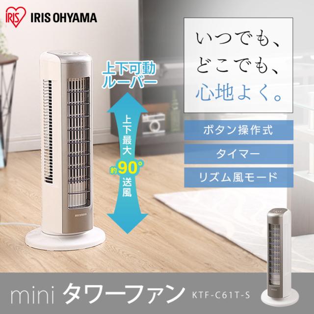 扇風機 タワーファン 冷風 静音 メカ式 スリム 羽根なし タワー型 アイリスオーヤマ タワー型 静音 静か 首振り 左右 タワーファン 上下ルーバー リモコン 省スペース コンパクト タワー型扇風機 KTF-C61TS 送料無料 安心延長保証対象