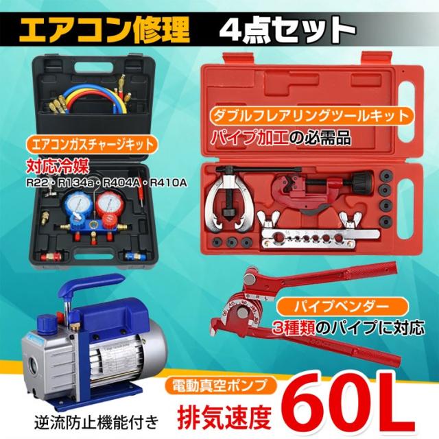 エアコンガスチャージ 真空ポンプ パイプベンダー 4点セット R22 R134a R404A R410A エアコン用 冷媒 家庭用 自動車用 工具セット ee233