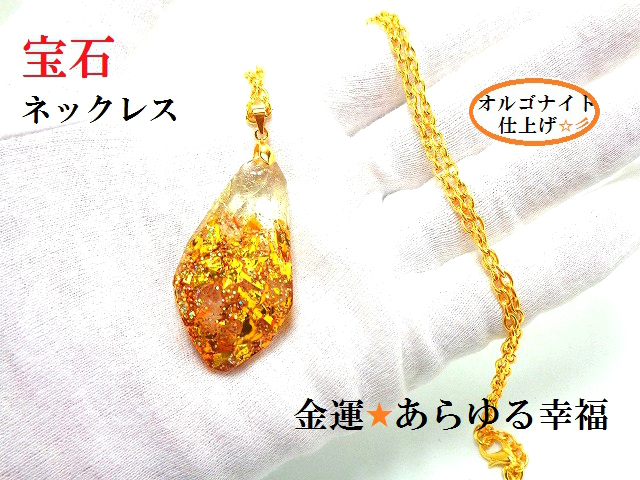 金運・あらゆる幸福★金・ゴールド★水晶★オルゴナイト★宝石ネックレス