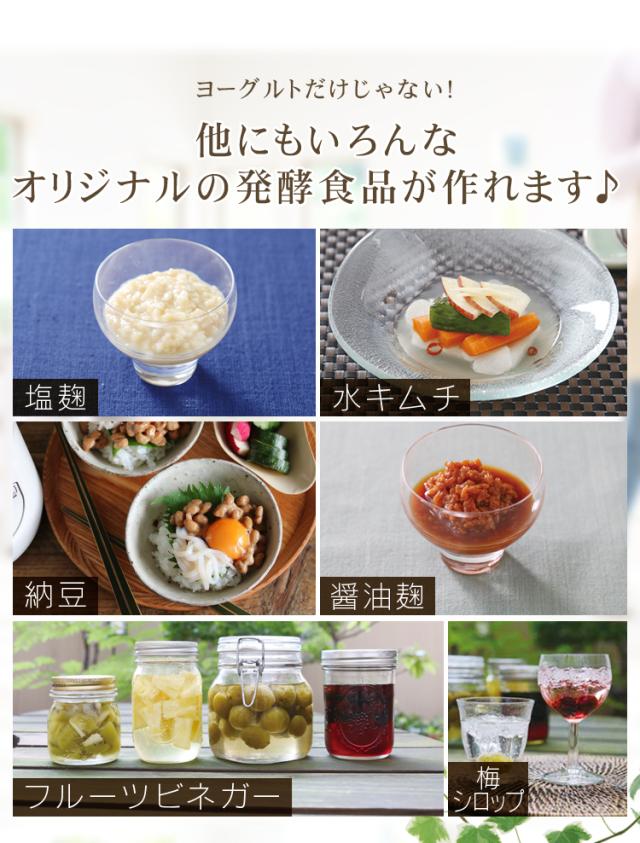 「菌・設定温度・時間」の組み合わせでヨーグルトや様々な発酵食品が作れます。