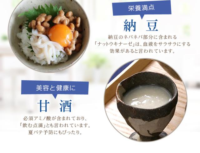 自家製甘酒(自動メニュー)、納豆、クリームチーズ、天然酵母など