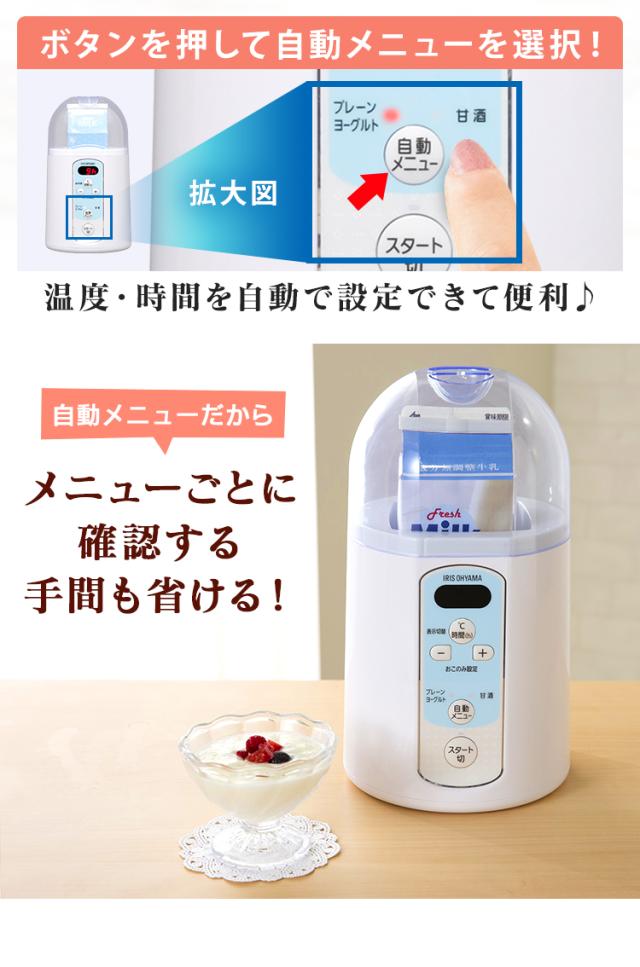 プレーンヨーグルト、甘酒ならボタン一つで、調理開始。