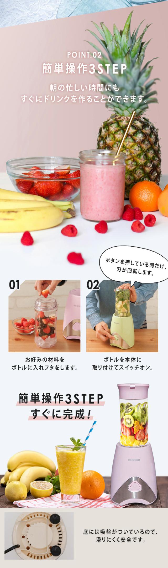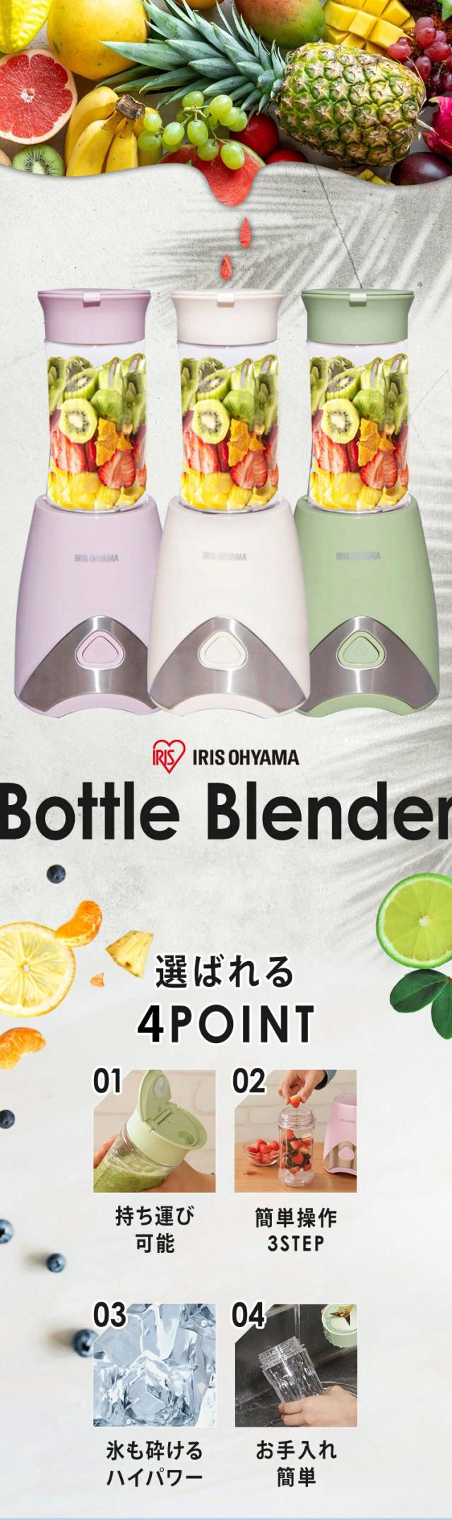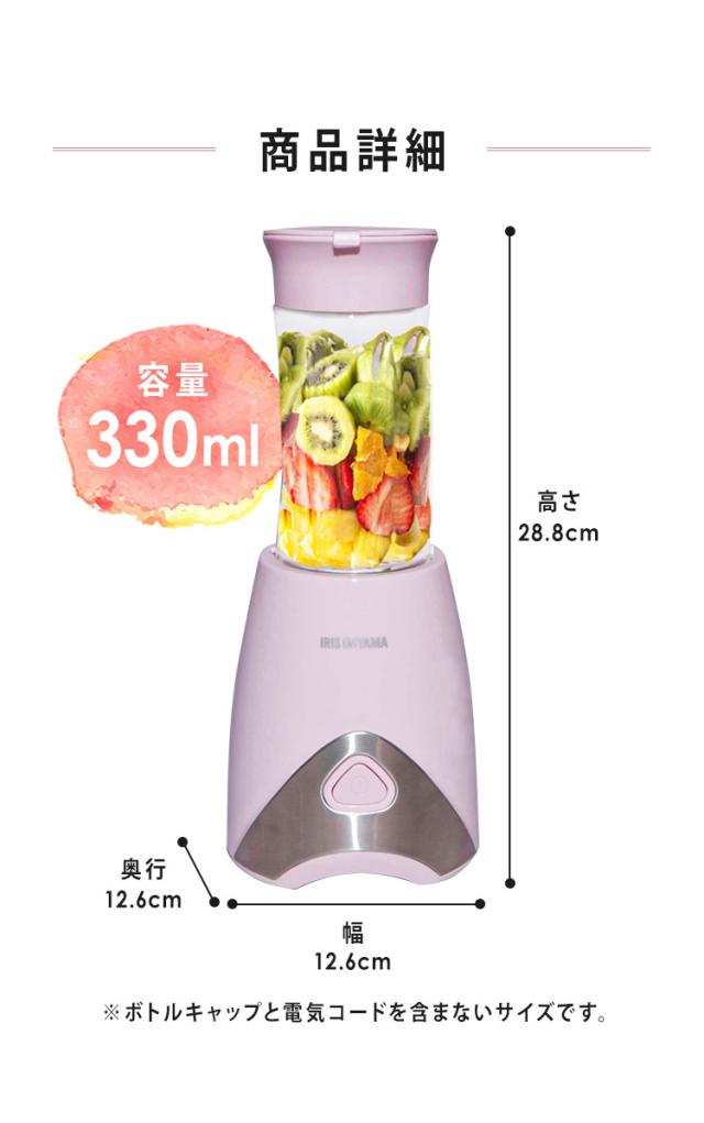 ミキサー 小型 330ml スムージー ジュース 氷も砕ける ハイパワー 4枚カッター フルーツ 果物 野菜 持ち運び 洗いやすい 丸洗い お手入れ簡単 簡単操作 ギフト プレゼント 新生活 ミキサーブレンダー ボトルブレンダー アイリスオーヤマ PBB-330 *