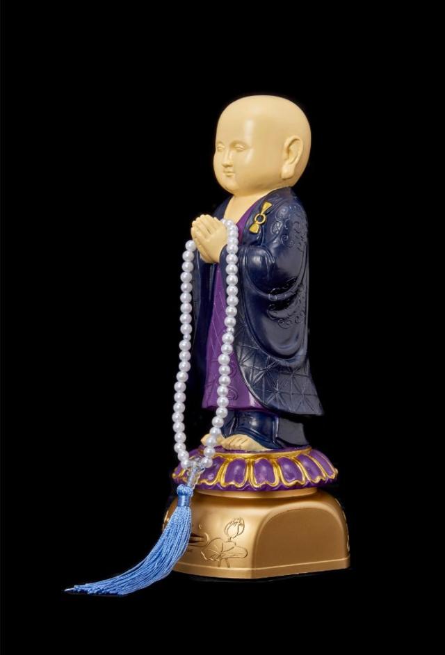 いつでもどこでも心行くまで共に読経をしてくれるお経を唱える可愛いお坊さん人形です。土台から般若心経が流れるので朝夕のおつとめや読経の練習にも最適です。電源スイッチとボリュームダイヤルだけの操作でだれでも簡単に使用できます。一人で拝むよりもお坊さんと一緒に拝むことで日々のおつとめがより積極的になります。お坊さんの手は数珠掛けになっております。穏やかな表情で飾っておくだけでで癒されます。組み立て不要。■種類:●般若心教●浄土真宗西本願寺(和讃六首引・回向句)●浄土真宗東本願寺(念仏和讃・回向)●日蓮宗