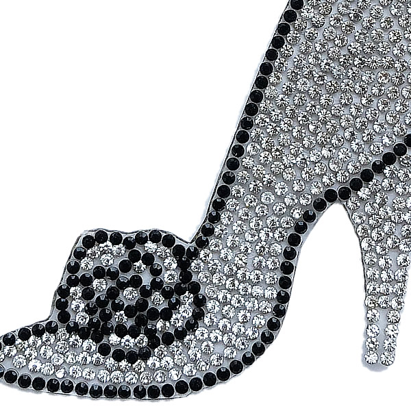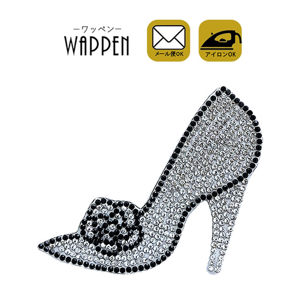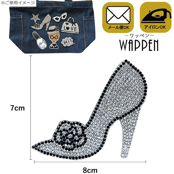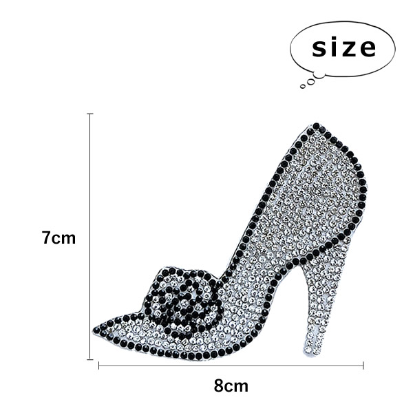 ストーン ワッペン アイロン接着 カメリア ヒール 靴 クツ 縦7cm×横8cm キラキラワッペン 手芸 デコ アップリケ 母の日 プレゼント ギフト