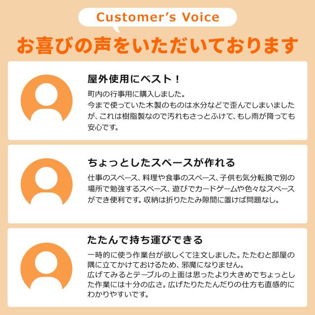●樹脂天板の為、木製天板の折りたたみテーブルより軽量です。